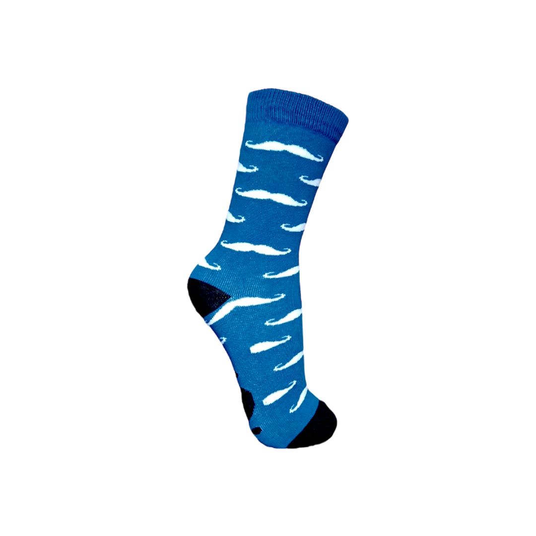 Meia Cano Alto Bigode Branco Fundo Azul