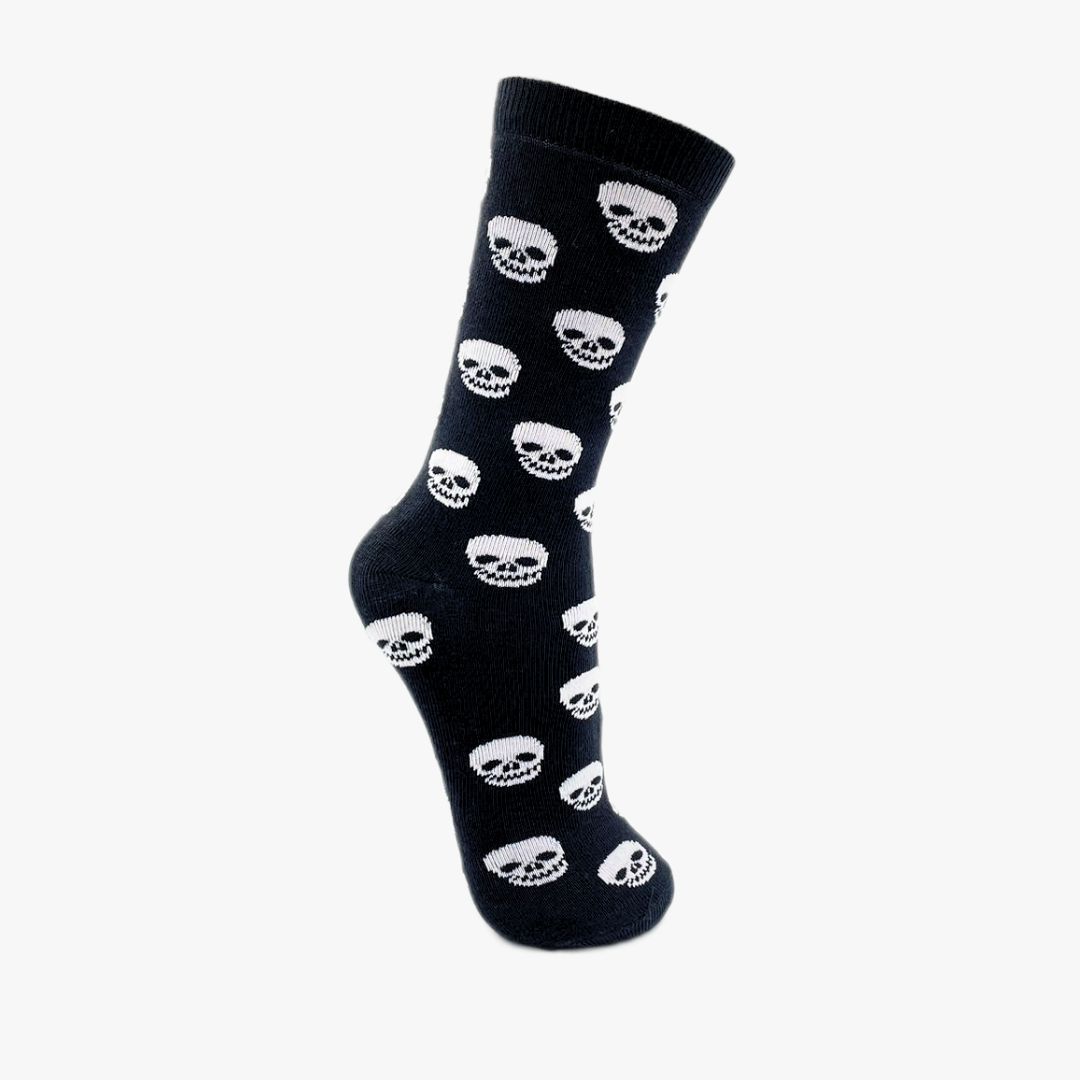 Meia Cano Alto Caveira Fundo Preto