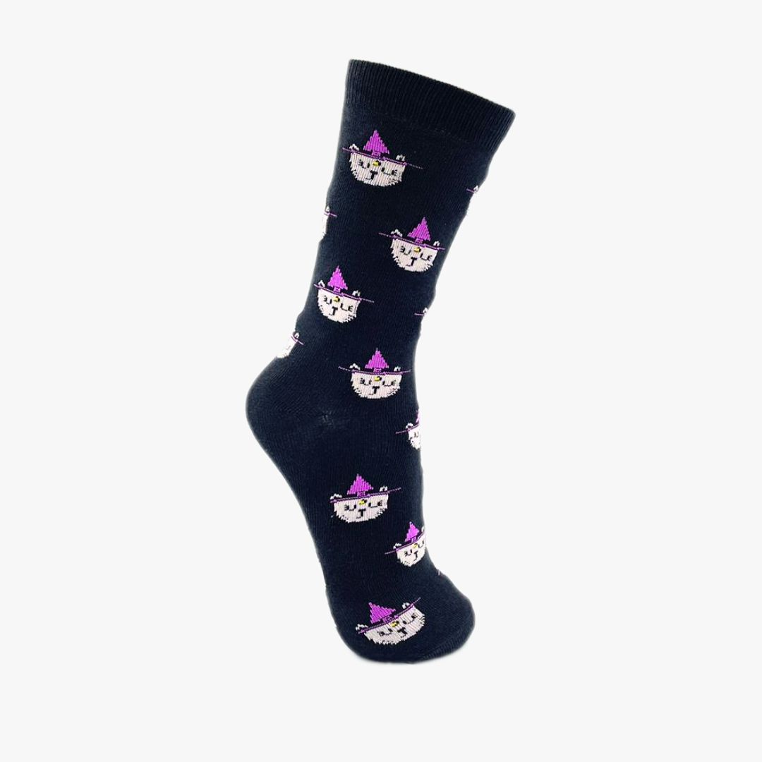Meia Cano Alto Gatinho de Chapéu Fundo Preto