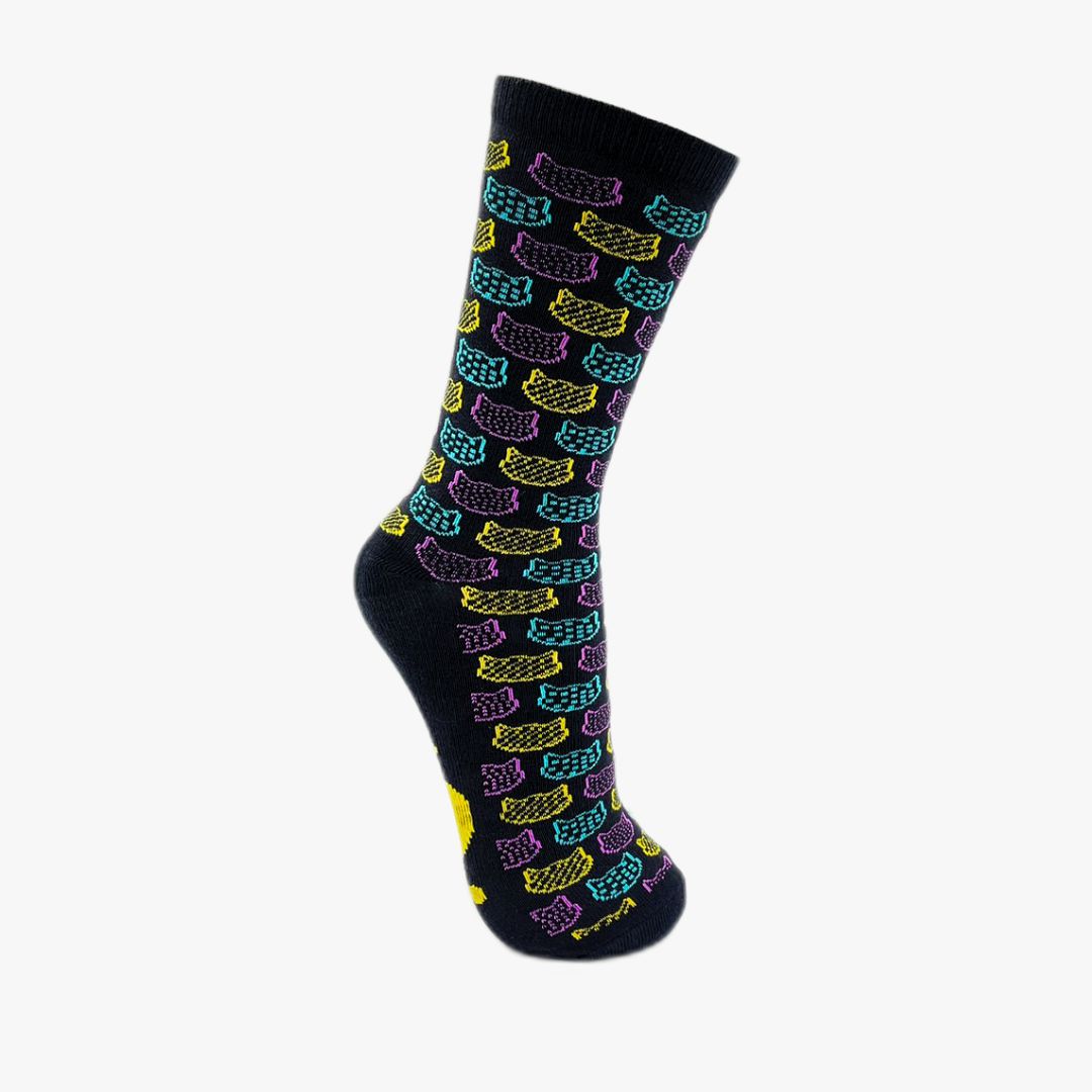 Meia Cano Alto Gatinhos Coloridos Fundo Preto