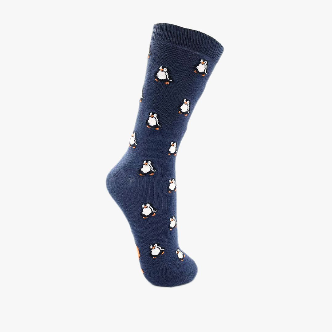 Meia Cano Alto Pinguim Fundo Azul Marinho