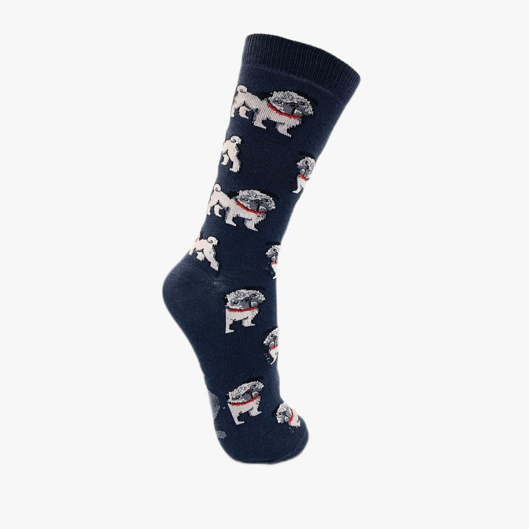 Meia Cano Alto Pug s/ óculos Fundo Azul Marinho